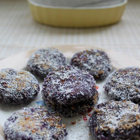 第一种:面食菜谱椰香紫薯饼做法