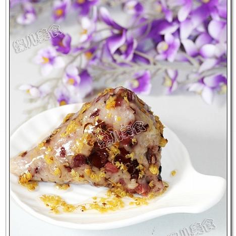 8、吃的时候,将粽子剥开,淋入糖桂花即可。