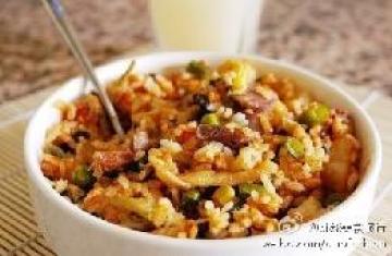 做法:1)大米洗净、豆角洗净切粒、土豆去皮洗净切1厘米见方的小丁、香肠切丁 2)上述准备好的材料和青豆、玉米粒一同放入电饭煲,加水没过所有材料一厘米,滴入几滴酱油,加两小勺盐拌匀 3)按正常煮饭程序至开关跳起后再焖10分钟4)加入榨菜和适量韩式辣酱拌匀即可