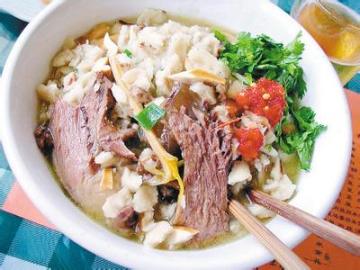 1.一碗好的泡馍,首先须先有一锅煮制成的好汤。而煮肉工艺也特别讲究,先要将牛羊肉反复漂洗,浸泡约5小时,切成约5斤重的大块。