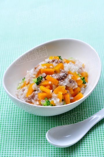 老南瓜 30克,牛肉30 克,西兰花 30克,白米饭 1碗