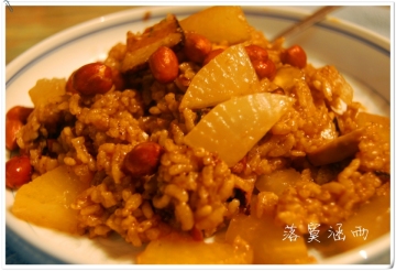 【食材】大米//花生//鲜肉//腊肉//新鲜香菇//新鲜萝卜//酱油//糖