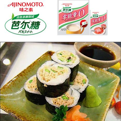 用料:鲔鱼30克,紫菜1片,紫圆白菜30克,寿司米饭半碗,盐1小匙,橄榄油1/4小匙,调味料:米醋:1小匙,芭尔糖1/4小匙