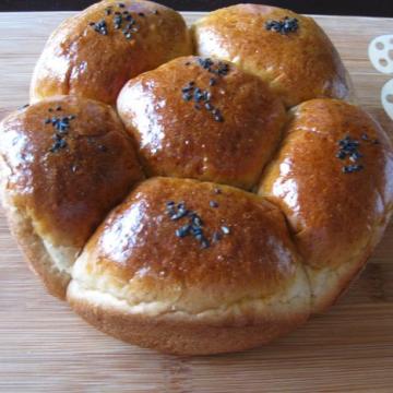 linlan(联机)发表:,1,高筋粉250克,细砂糖25克,盐1/2小匙,干酵母3克,奶粉10克,蛋液15克,水140克,无盐奶油20克,黑胡椒粉1小匙,2,内馅:猪肉馅40克,洋葱丁30克,盐,黑胡椒粉各1/8小匙,3,装饰:黑芝麻1大匙