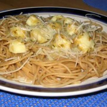 黄油4汤匙,蒜头3个,捣碎,大洋葱1个,捣碎,干白葡萄酒100毫升,盐1茶匙,现磨黑胡椒1/4茶匙,现磨罗马诺干酪50克,鸡汤一罐500克,扇贝500克,意大利面一盒500克,新鲜欧芹1把,切碎