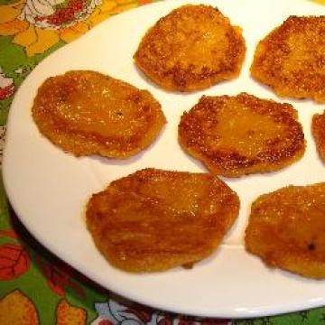 3、把面团做成小圆饼,外面包裹上一层面包糠。