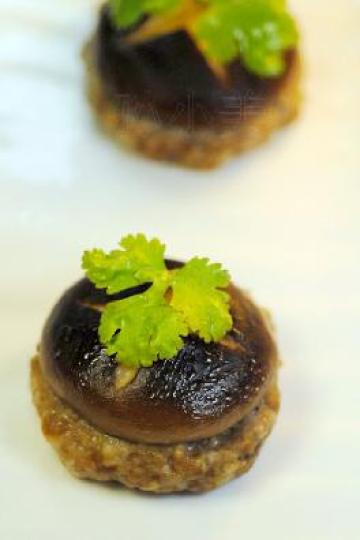 (4)、把(3)一个个扣在鲜香菇上,放在蒸笼上蒸7~8分钟即可。