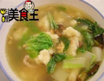 面疙瘩。虾。花蛤。胡蟹、青菜。