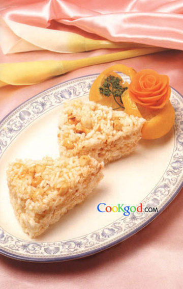 主料糯米干6两(约240克),炒花生、砂糖、麦芽糖各2两(约80克),清水1/3杯,猪汤2汤匙,柠檬汁、柠檬皮蓉各少许,生油适量。
