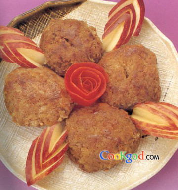 主料碎牛肉12两(约480克),洋葱碎1小个量,植物牛油1汤匙,甜红椒粉1茶匙,茄汁2汤匙,打匀鸡蛋液1只量,酸辣果酱2汤匙,混合香草少许,面包糠1/2杯,苹果1个,生油4汤匙。