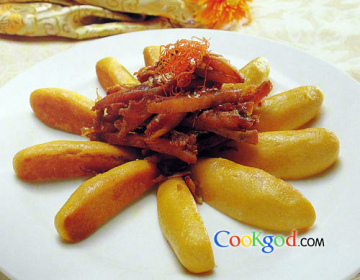 咸鱼应选用甜晒鱼,炸时不宜炸得太硬。