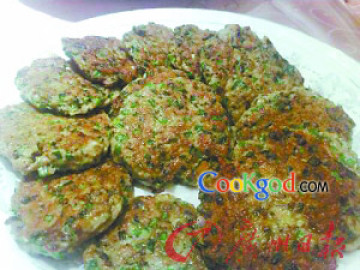 第一种:面食菜谱香煎韭菜蚬饼做法