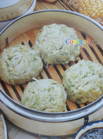 2、将拌好的卷心菜制成菜团,入蒸锅蒸熟。