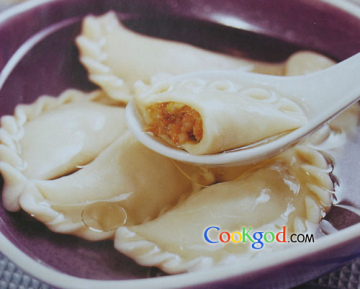 7.煮饺子的水要多一些,如果用炒菜锅煮,加大半锅水,水开后下饺子,一次下2~30个,边煮边用漏勺背儿搅拌,水开了加半碗凉水继续煮,一般三开后饺子膨胀全部飘在水面就煮好了。