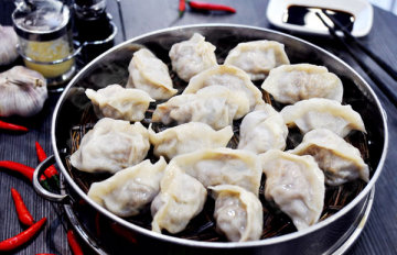 鳕鱼饺、蒜苔饺子、茄子饺、荠菜饺、芹菜饺