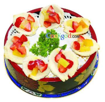 面包片250克,罐头杂果各15克。调料沙拉酱10克。
