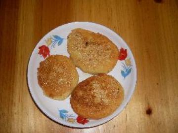 2、用勺子挖一团出来放在手上,搓成圆球,再拍扁,撒点芝麻在上面,放入热的油里面煎,等两面都焦黄就可以出锅了。外酥里嫩,又有芝麻的香味~~
