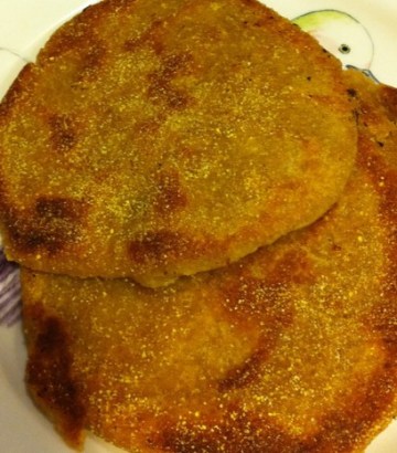 5。饼底黄了后翻面,加半小碗水,等水干了,饼底煎黄了就行了。