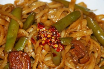 7. 出锅前把面条、豆角、肉和汤汁充分搅拌均匀就行了。