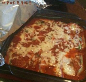 主料:2罐意大利面酱(spaghetti sauce) 2杯part-skim ricotta cheese 1/2杯