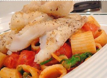 第二种:面食菜谱香煎鳕鱼配蔬菜管面做法