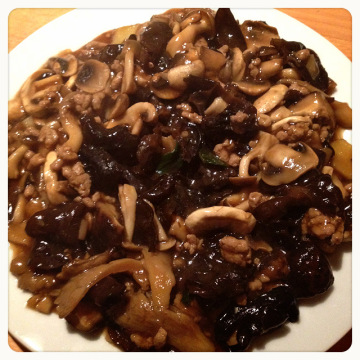 杂菇,黑木耳,肉糜,葱,姜,耗油,老抽,糖,鸡精,淀粉