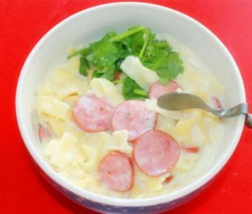 意大利面、牛奶、盐、腊肠(sausage)、黄油50克左右