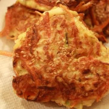 zucchini,胡萝卜,盐,葱,姜末,白胡椒,1个鸡蛋,甜不辣粉