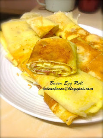 3、蛋饼+培根 = 卷起就可以了!