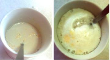 2. 把混合液放置20分钟以确定酵母的活跃性后(有发丰富的泡沫).