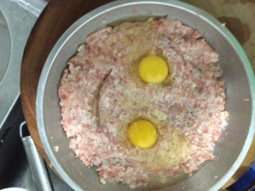 3,将鸡蛋直接放在肉饼上。或混在肉饼。