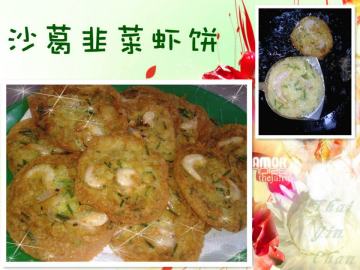 相关菜谱名称推荐:沙葛韭菜虾饼,沙葛韭菜虾饼,月亮虾饼 台湾人气美食月亮虾饼的烹饪方法,韭菜虾皮糊饼