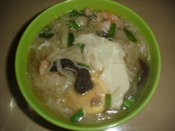材料:,肉丝2两,小白菜1把,香菇8朵,青葱2根,中筋面粉2杯,蛋1颗,虾米2大匙,