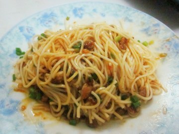qq面,瘦肉,蔥,豆辨醬