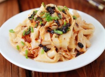 原料:面粉(最好是髙筋面粉),水,盐,花生油;调料:豆豉油制辣椒,花生酱,葱