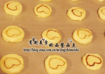 6.饼干放在涂了油的烤盘上,为了烤后颜色好看,可以在饼干上涂一层蛋黄液。入烤箱160度,15分钟(请根据自己烤箱的实际温度调节时间)