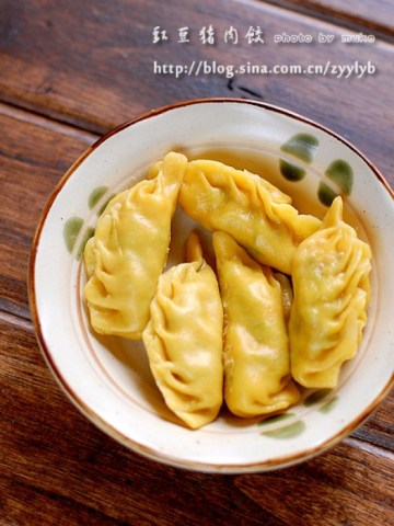 15.水开后,下入饺子,浮起后就可以了。(蘸料用醋,海天拌饭酱,花生碎,葱花调合而成,很香,不太辣但够味)