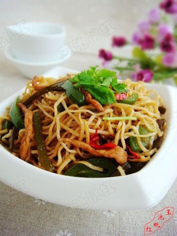 第一种:面食菜谱青椒肉丝焖面做法