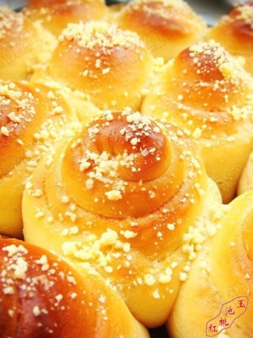 面团材料:高粉200克,低粉20克,细砂糖30克,盐2克,酵母3克,奶酪粉5克,全蛋15克,水120克,黄油20克