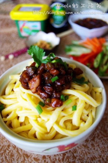 在家做的时候我一般喜欢一边煮面,一般炸酱,这样面和酱可以一起出锅,