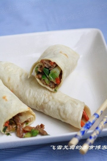 相关菜谱名称推荐:肉丝卷饼,肉丝卷饼,京酱肉丝卷饼,雪菜笋丝卷饼