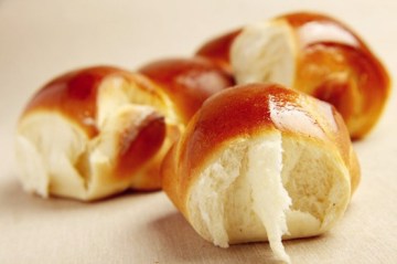 高筋面粉500g(100%),砂糖20g(4%),鸡蛋100g(20%),盐10g(2%),黄油60g(12%),牛奶200g(40%),干酵母5g(1%),黄油适量