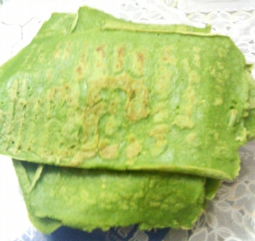 5、直到两面微黄就好了。不过加入青菜的蛋饼韧度不够,翻面很容易断,所以有一定技巧的话最好翻面的时候连着锅一起翻。