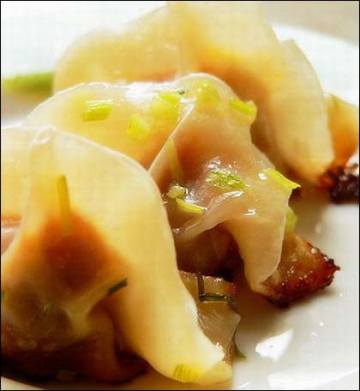 3.面在擀成皮以前要再揉至少一次,让面更筋道;擀皮包饺子;包得差不多的时候(大约可以包15个饺子),锅里放少许油,油7成热以后放入饺子,小火煎1分钟,底儿金黄以后,淋少许热水,盖上盖子焖一小会儿,到饺子皮变得透明以后,掀开盖子,把饺子的另外两面煎一下就好了。