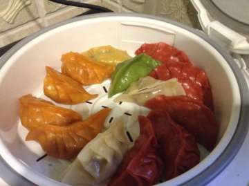 4放置好饺子,再放入电饭煲里,ok!