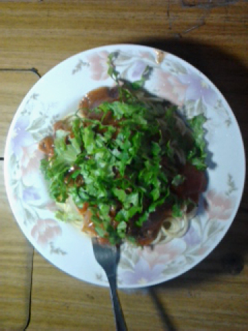 因为我爱吃意大利面,我在意大利面上撒生菜丝就更美味了!