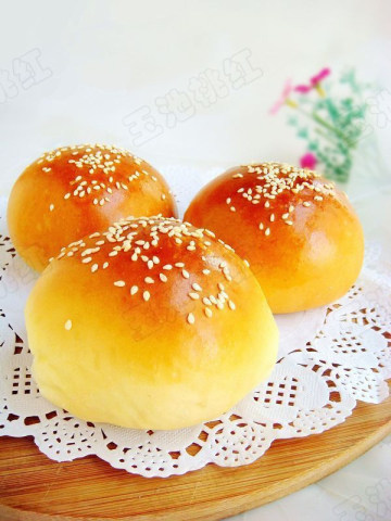 7、放温暖处发酵,当发至两倍以上大时,刷蛋液,撒白芝麻。