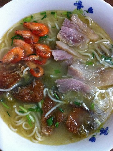 第二种:面食菜谱油爆虾熏鱼五花咸肉面做法