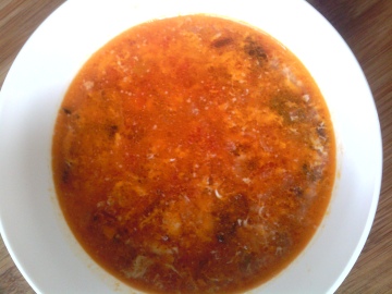 第四步:把葱姜蒜等在锅里爆炒,加入西红柿翻炒,待西红柿略化开加入适量水,煮开加入盐、味精、胡椒粉、酱油等。