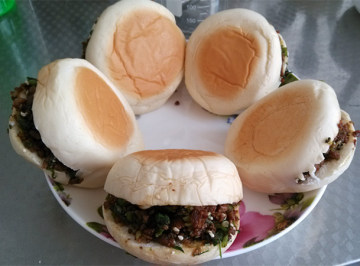 5、将炒好的肉馅放入面包里就可以吃啦!